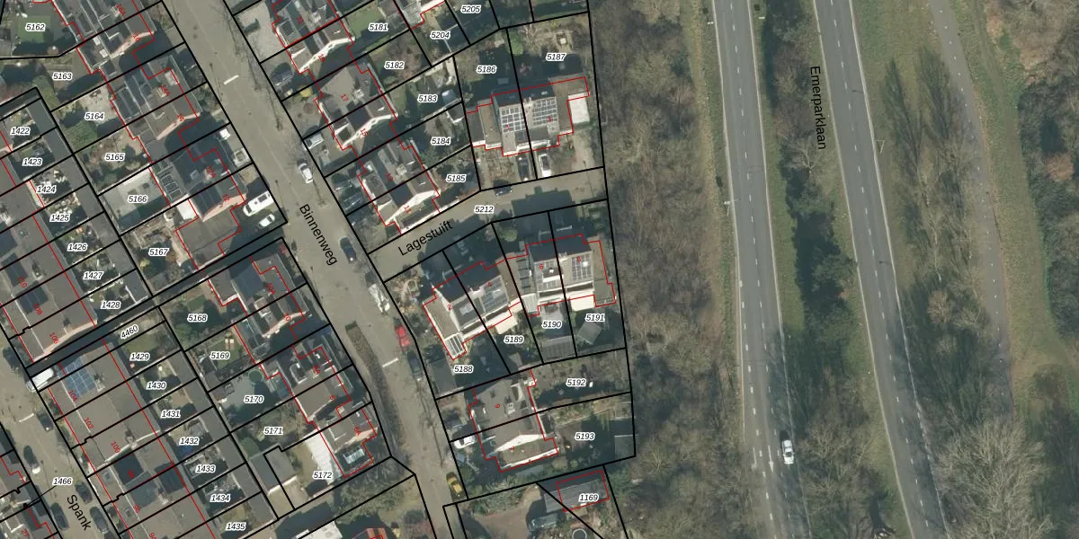 Gebruik de zoekbalk of klik op een perceel voor informatie over de adressen binnen dit perceel.