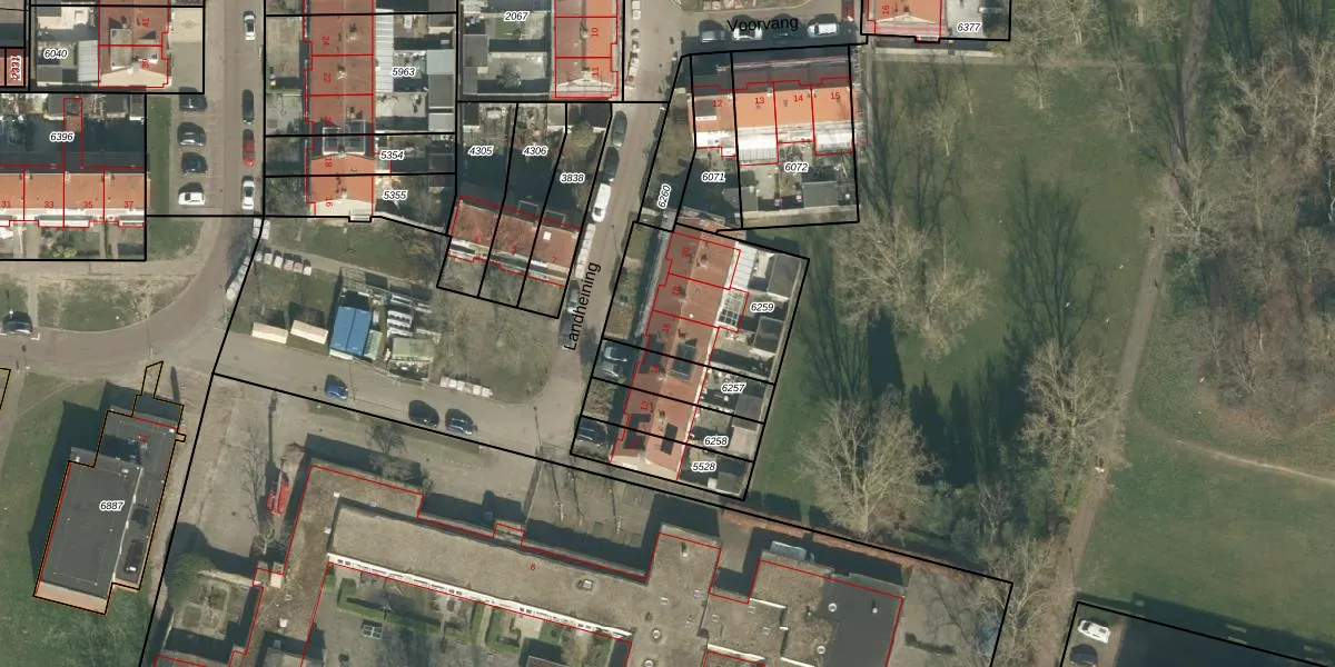 Het perceel waarop Landheining 16 staat heeft een oppervlakte van 530 m². Dit is een groot perceel. De perceeloppervlakte wordt geregistreerd door het Kadaster. Gedetailleerde informatie over de maten van dit perceel kunt u vinden in het rapport Kadastrale kaart met maatvoering van Landheining 16.