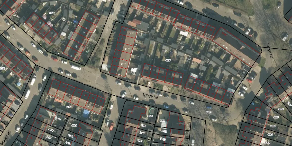 Het perceel waarop Lange Hil 57 staat heeft een oppervlakte van 5359 m². Dit is een zeer groot perceel. De perceeloppervlakte wordt geregistreerd door het Kadaster. Gedetailleerde informatie over de maten van dit perceel kunt u vinden in het rapport Kadastrale kaart met maatvoering van Lange Hil 57.
