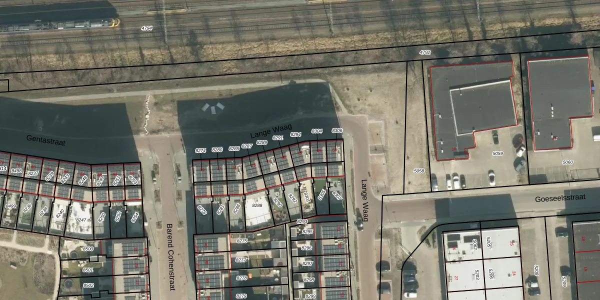 Het perceel waarop Lange Waag 67 staat heeft een oppervlakte van 49 m². Dit is een klein perceel. De perceeloppervlakte wordt geregistreerd door het Kadaster. Gedetailleerde informatie over de maten van dit perceel kunt u vinden in het rapport Kadastrale kaart met maatvoering van Lange Waag 67.