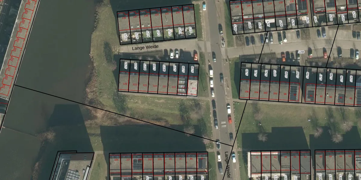 Het perceel waarop Lange Weide 113 staat heeft een oppervlakte van 98 m². Dit is een klein perceel. De perceeloppervlakte wordt geregistreerd door het Kadaster. Gedetailleerde informatie over de maten van dit perceel kunt u vinden in het rapport Kadastrale kaart met maatvoering van Lange Weide 113.