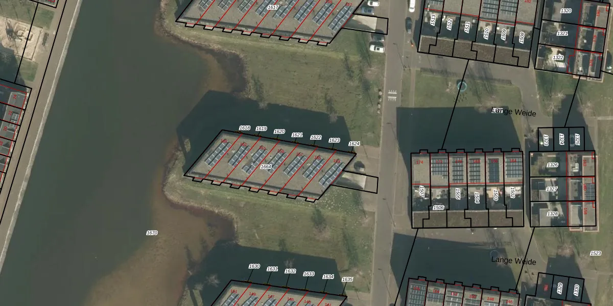 Het perceel waarop Lange Weide 157 staat heeft een oppervlakte van 847 m². Dit is een groot perceel. De perceeloppervlakte wordt geregistreerd door het Kadaster. Gedetailleerde informatie over de maten van dit perceel kunt u vinden in het rapport Kadastrale kaart met maatvoering van Lange Weide 157.