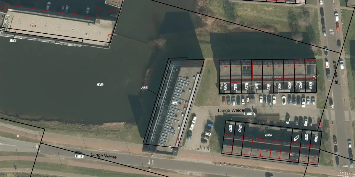Het perceel waarop Lange Weide 45 staat heeft een oppervlakte van 915 m². Dit is een groot perceel. De perceeloppervlakte wordt geregistreerd door het Kadaster. Gedetailleerde informatie over de maten van dit perceel kunt u vinden in het rapport Kadastrale kaart met maatvoering van Lange Weide 45.