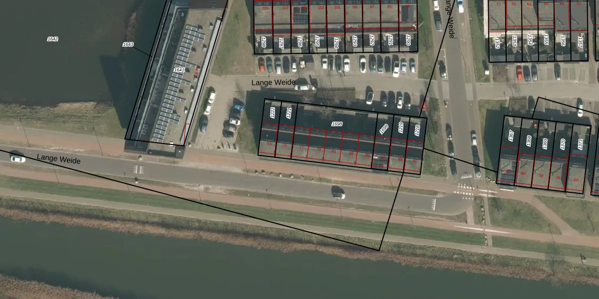 Het perceel waarop Lange Weide 77 staat heeft een oppervlakte van 515 m². Dit is een groot perceel. De perceeloppervlakte wordt geregistreerd door het Kadaster. Gedetailleerde informatie over de maten van dit perceel kunt u vinden in het rapport Kadastrale kaart met maatvoering van Lange Weide 77.