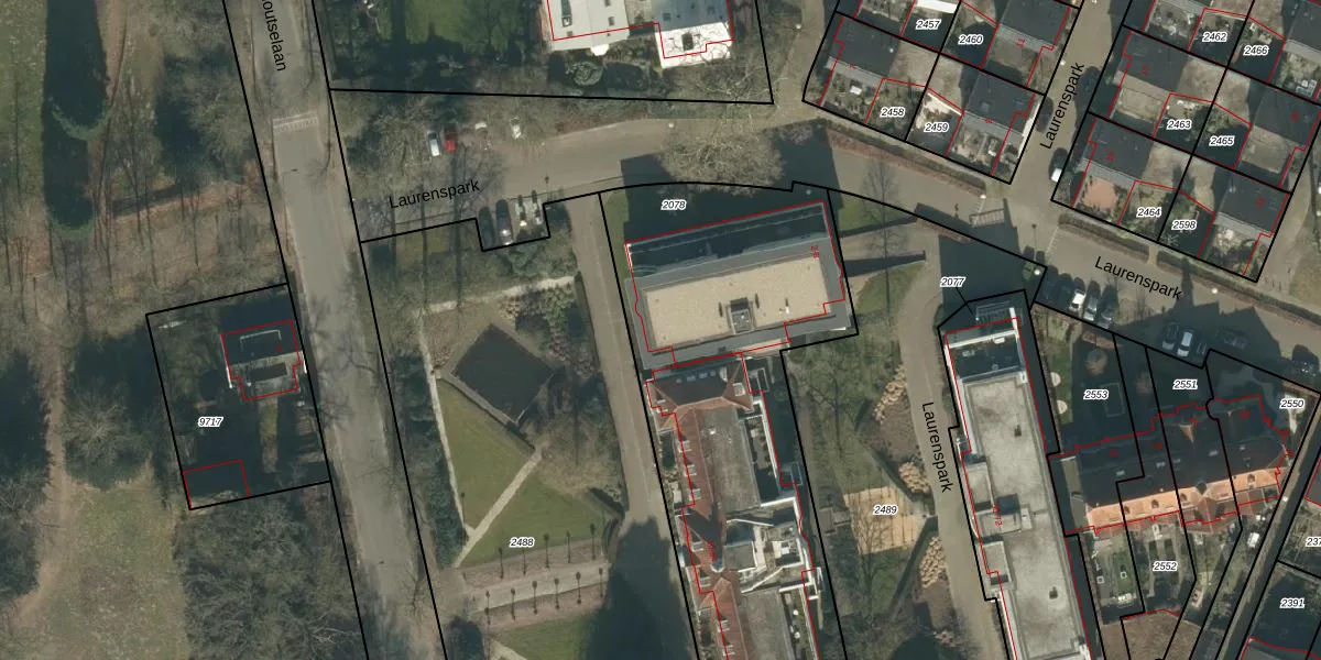 Het perceel waarop Laurenspark 8 staat heeft een oppervlakte van 2896 m². Dit is een zeer groot perceel. De perceeloppervlakte wordt geregistreerd door het Kadaster. Gedetailleerde informatie over de maten van dit perceel kunt u vinden in het rapport Kadastrale kaart met maatvoering van Laurenspark 8.