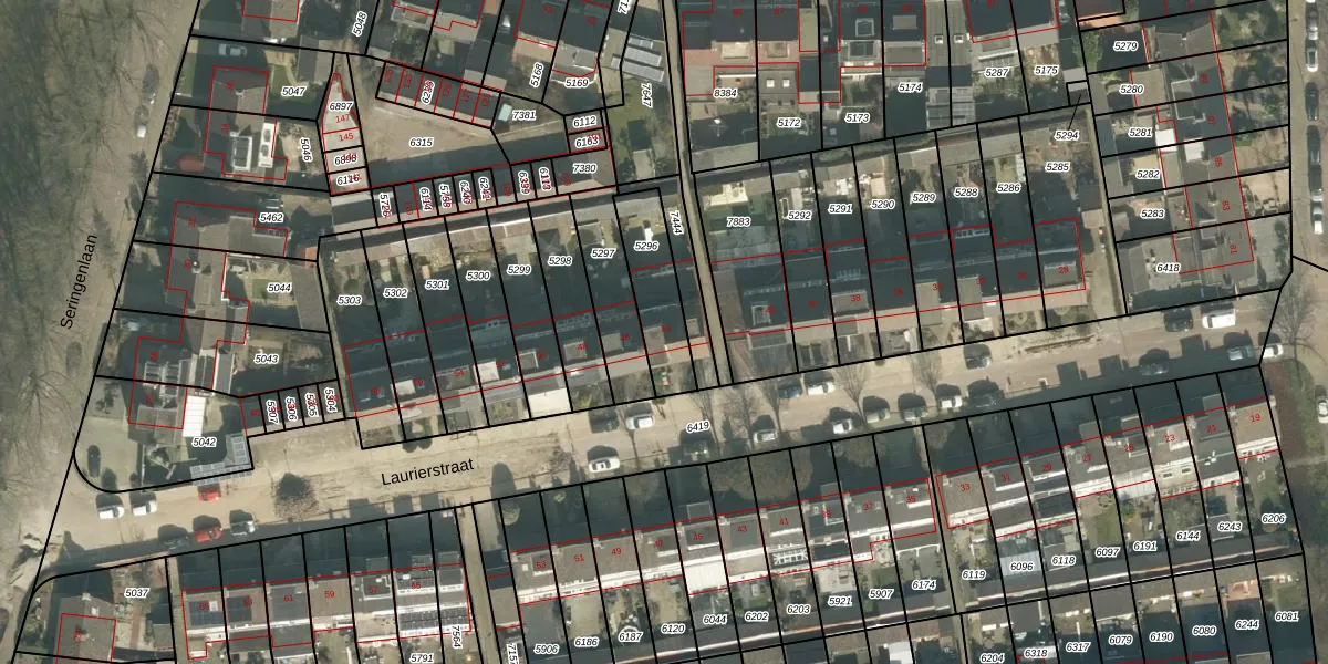 Laurierstraat 44 is gelegen op kadastraal perceel BDA00E5296. Deze kadastrale aanduiding is uniek en wordt gebruikt door het Kadaster om eigendomsrechten en andere zakelijke rechten vast te leggen. Het perceel maakt onderdeel uit van de kadastrale gemeente Breda.