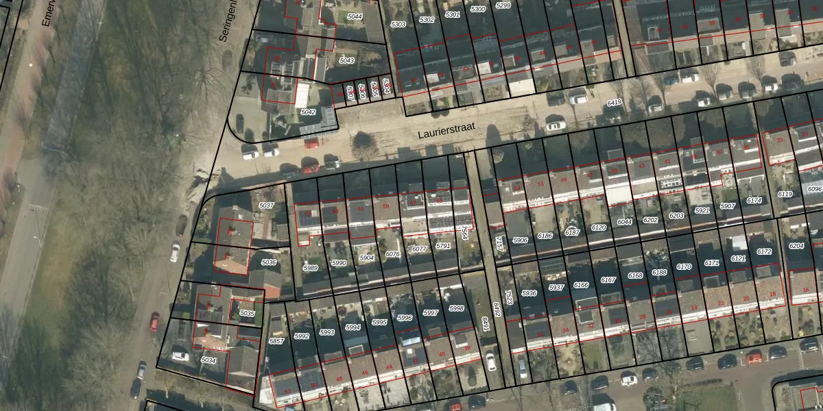 Laurierstraat 57 is gelegen op kadastraal perceel BDA00E6077. Deze kadastrale aanduiding is uniek en wordt gebruikt door het Kadaster om eigendomsrechten en andere zakelijke rechten vast te leggen. Het perceel maakt onderdeel uit van de kadastrale gemeente Breda.