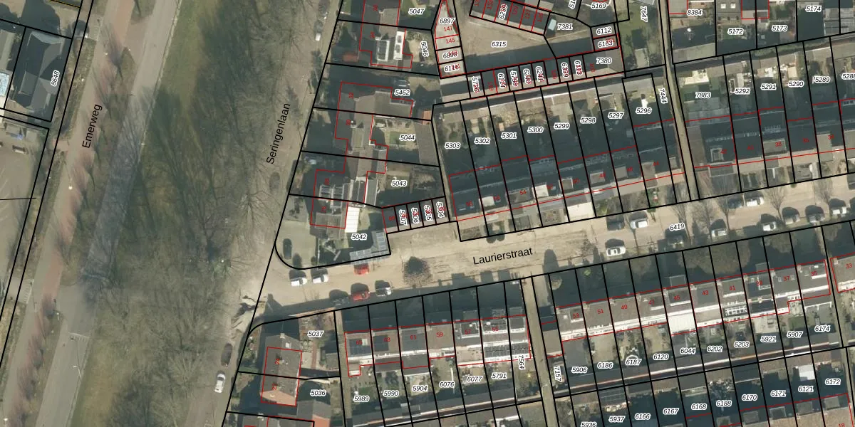 Laurierstraat 62 is gelegen op kadastraal perceel BDA00E5305. Deze kadastrale aanduiding is uniek en wordt gebruikt door het Kadaster om eigendomsrechten en andere zakelijke rechten vast te leggen. Het perceel maakt onderdeel uit van de kadastrale gemeente Breda.