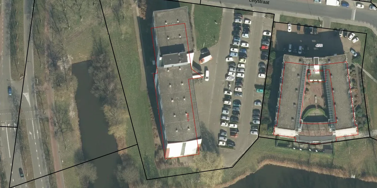 Het perceel waarop Lelystraat 2-B staat heeft een oppervlakte van 6700 m². Dit is een zeer groot perceel. De perceeloppervlakte wordt geregistreerd door het Kadaster. Gedetailleerde informatie over de maten van dit perceel kunt u vinden in het rapport Kadastrale kaart met maatvoering van Lelystraat 2-B.