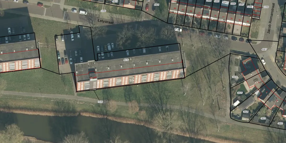 Het perceel waarop Lelystraat 438 staat heeft een oppervlakte van 2460 m². Dit is een zeer groot perceel. De perceeloppervlakte wordt geregistreerd door het Kadaster. Gedetailleerde informatie over de maten van dit perceel kunt u vinden in het rapport Kadastrale kaart met maatvoering van Lelystraat 438.