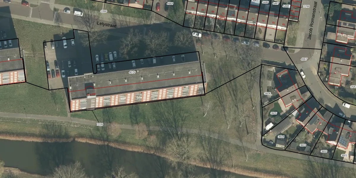 Het perceel waarop Lelystraat 456 staat heeft een oppervlakte van 2460 m². Dit is een zeer groot perceel. De perceeloppervlakte wordt geregistreerd door het Kadaster. Gedetailleerde informatie over de maten van dit perceel kunt u vinden in het rapport Kadastrale kaart met maatvoering van Lelystraat 456.