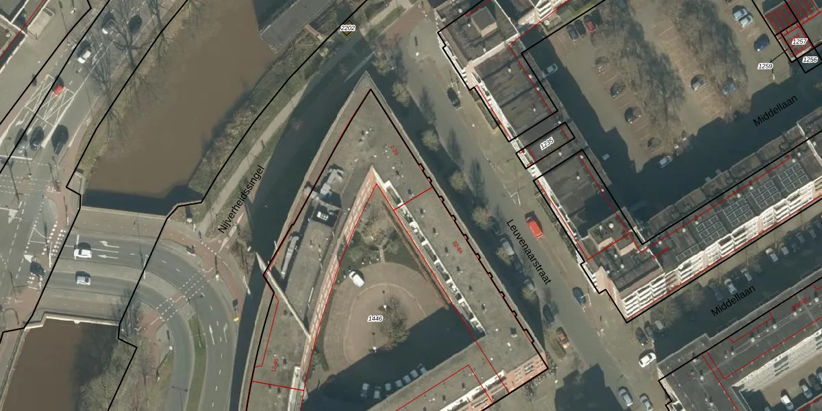Het perceel waarop Leuvenaarstraat 24 staat heeft een oppervlakte van 4440 m². Dit is een zeer groot perceel. De perceeloppervlakte wordt geregistreerd door het Kadaster. Gedetailleerde informatie over de maten van dit perceel kunt u vinden in het rapport Kadastrale kaart met maatvoering van Leuvenaarstraat 24.