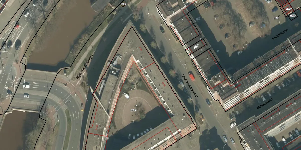 Het perceel waarop Leuvenaarstraat 28 staat heeft een oppervlakte van 4440 m². Dit is een zeer groot perceel. De perceeloppervlakte wordt geregistreerd door het Kadaster. Gedetailleerde informatie over de maten van dit perceel kunt u vinden in het rapport Kadastrale kaart met maatvoering van Leuvenaarstraat 28.