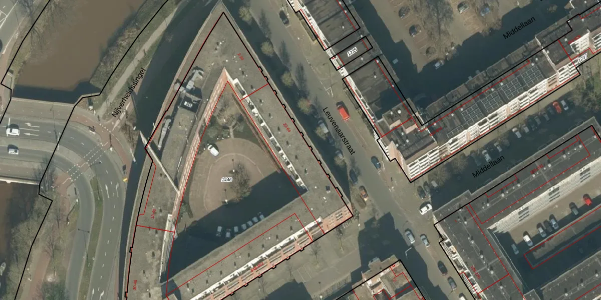 Het perceel waarop Leuvenaarstraat 42 staat heeft een oppervlakte van 4440 m². Dit is een zeer groot perceel. De perceeloppervlakte wordt geregistreerd door het Kadaster. Gedetailleerde informatie over de maten van dit perceel kunt u vinden in het rapport Kadastrale kaart met maatvoering van Leuvenaarstraat 42.