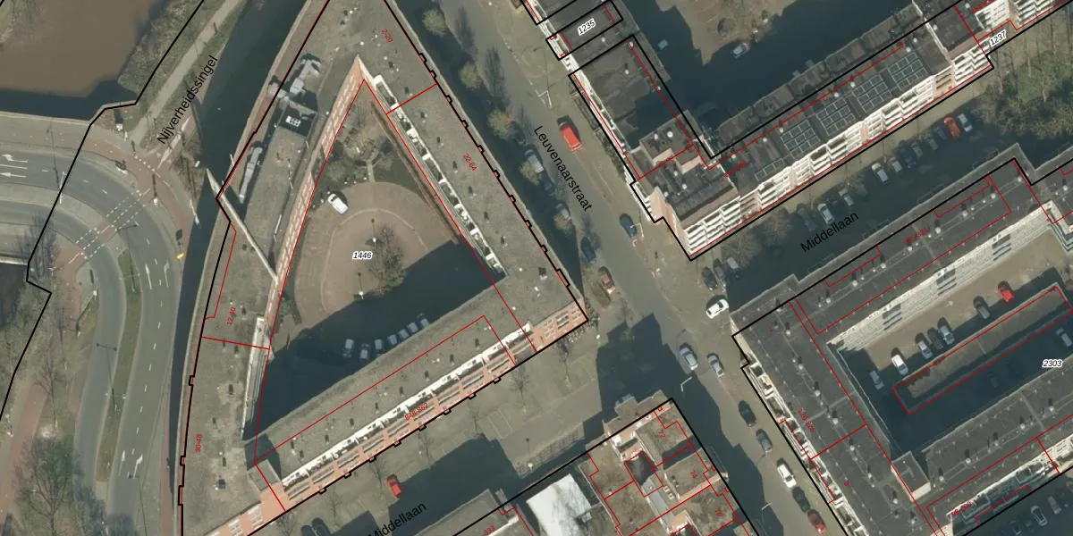 Het perceel waarop Leuvenaarstraat 54 staat heeft een oppervlakte van 4440 m². Dit is een zeer groot perceel. De perceeloppervlakte wordt geregistreerd door het Kadaster. Gedetailleerde informatie over de maten van dit perceel kunt u vinden in het rapport Kadastrale kaart met maatvoering van Leuvenaarstraat 54.