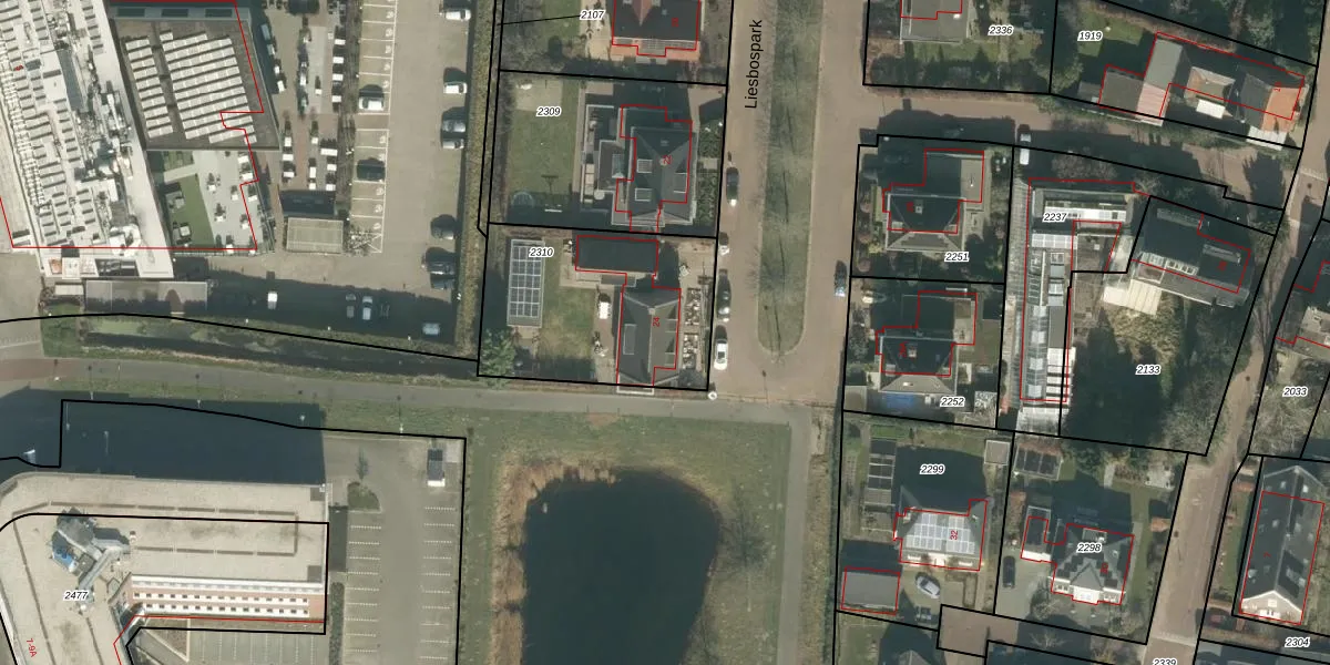 Het perceel waarop Liesbospark 24 staat heeft een oppervlakte van 795 m². Dit is een groot perceel. De perceeloppervlakte wordt geregistreerd door het Kadaster. Gedetailleerde informatie over de maten van dit perceel kunt u vinden in het rapport Kadastrale kaart met maatvoering van Liesbospark 24.