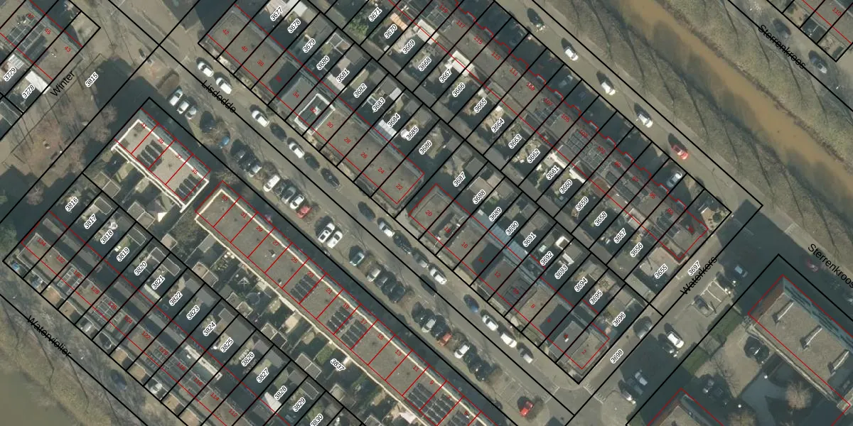 Gebruik de zoekbalk of klik op een perceel voor informatie over de adressen binnen dit perceel.