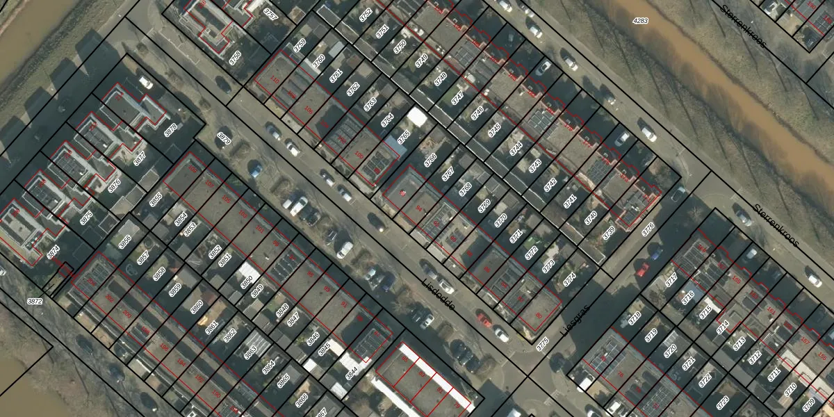 Gebruik de zoekbalk of klik op een perceel voor informatie over de adressen binnen dit perceel.