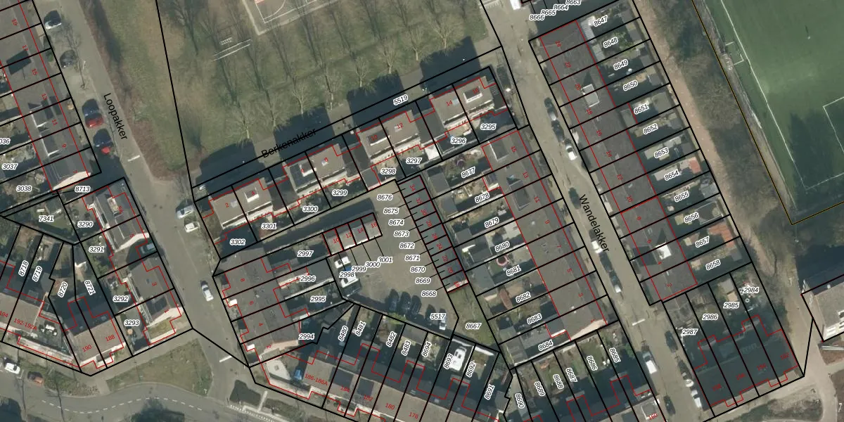 Loopakker 30 is gelegen op kadastraal perceel BDA00H8674. Deze kadastrale aanduiding is uniek en wordt gebruikt door het Kadaster om eigendomsrechten en andere zakelijke rechten vast te leggen. Het perceel maakt onderdeel uit van de kadastrale gemeente Breda.