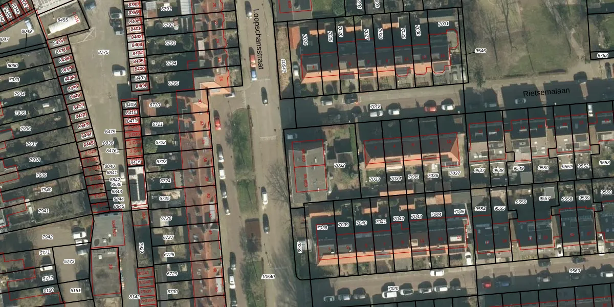 Het perceel waarop Loopschansstraat 93-B staat heeft een oppervlakte van 590 m². Dit is een groot perceel. De perceeloppervlakte wordt geregistreerd door het Kadaster. Gedetailleerde informatie over de maten van dit perceel kunt u vinden in het rapport Kadastrale kaart met maatvoering van Loopschansstraat 93-B.