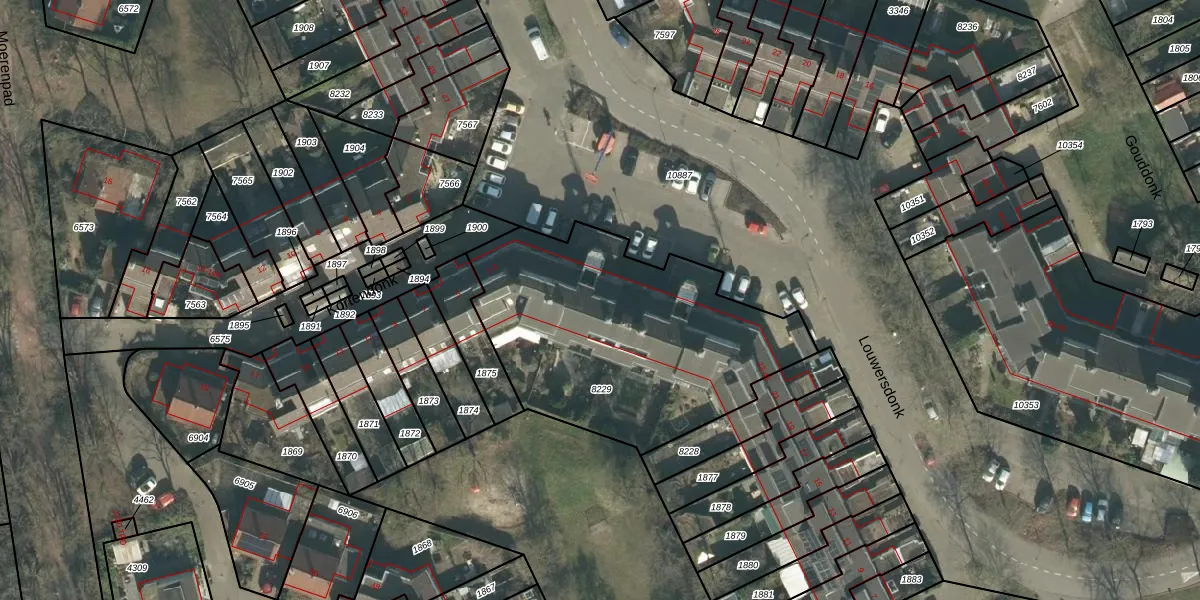 Het perceel waarop Louwersdonk 43 staat heeft een oppervlakte van 1361 m². Dit is een zeer groot perceel. De perceeloppervlakte wordt geregistreerd door het Kadaster. Gedetailleerde informatie over de maten van dit perceel kunt u vinden in het rapport Kadastrale kaart met maatvoering van Louwersdonk 43.