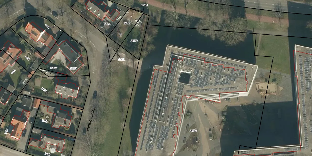 Het perceel waarop het adres ligt is BDA00-D-10583. De afkorting 'BDA00' staat voor kadastrale gemeente Breda. De oppervlakte van het perceel is 8435 m². Dat is groter dan gemiddeld in Breda, waar de gemiddelde perceeloppervlakte op 1059,93 m² ligt. De grootste perceeloppervlakte in de kadastrale gemeente is 44,1 ha. De kleinste oppervlakte bedraagt 0 m². Op het perceel liggen in totaal 105 adressen. De laatste wijziging in het de Basisregistratie Kadaster (BRK) was op 16-11-2006.