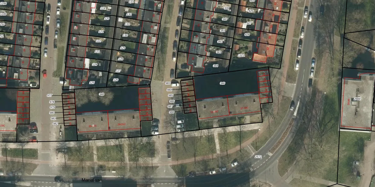 Gebruik de zoekbalk of klik op een perceel voor informatie over de adressen binnen dit perceel.