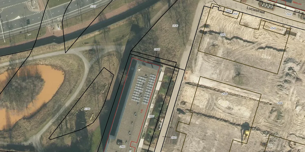 Het perceel waarop Luciastraat 11 staat heeft een oppervlakte van 3270 m². Dit is een zeer groot perceel. De perceeloppervlakte wordt geregistreerd door het Kadaster. Gedetailleerde informatie over de maten van dit perceel kunt u vinden in het rapport Kadastrale kaart met maatvoering van Luciastraat 11.