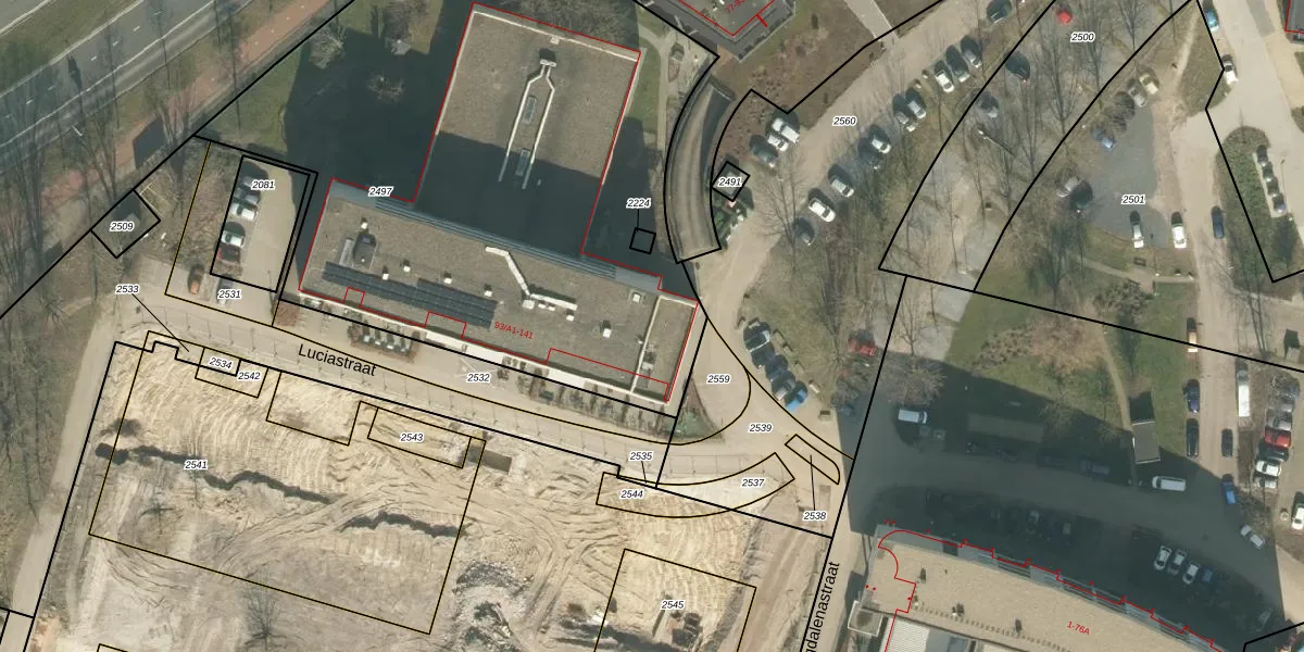 Het perceel waarop Luciastraat 125 staat heeft een oppervlakte van 3750 m². Dit is een zeer groot perceel. De perceeloppervlakte wordt geregistreerd door het Kadaster. Gedetailleerde informatie over de maten van dit perceel kunt u vinden in het rapport Kadastrale kaart met maatvoering van Luciastraat 125.