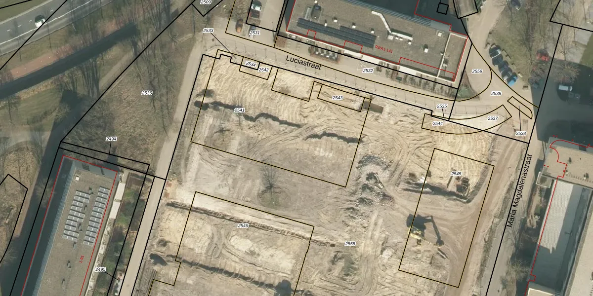 Het perceel waarop Luciastraat 172 staat heeft een oppervlakte van 1483 m². Dit is een zeer groot perceel. De perceeloppervlakte wordt geregistreerd door het Kadaster. Gedetailleerde informatie over de maten van dit perceel kunt u vinden in het rapport Kadastrale kaart met maatvoering van Luciastraat 172.
