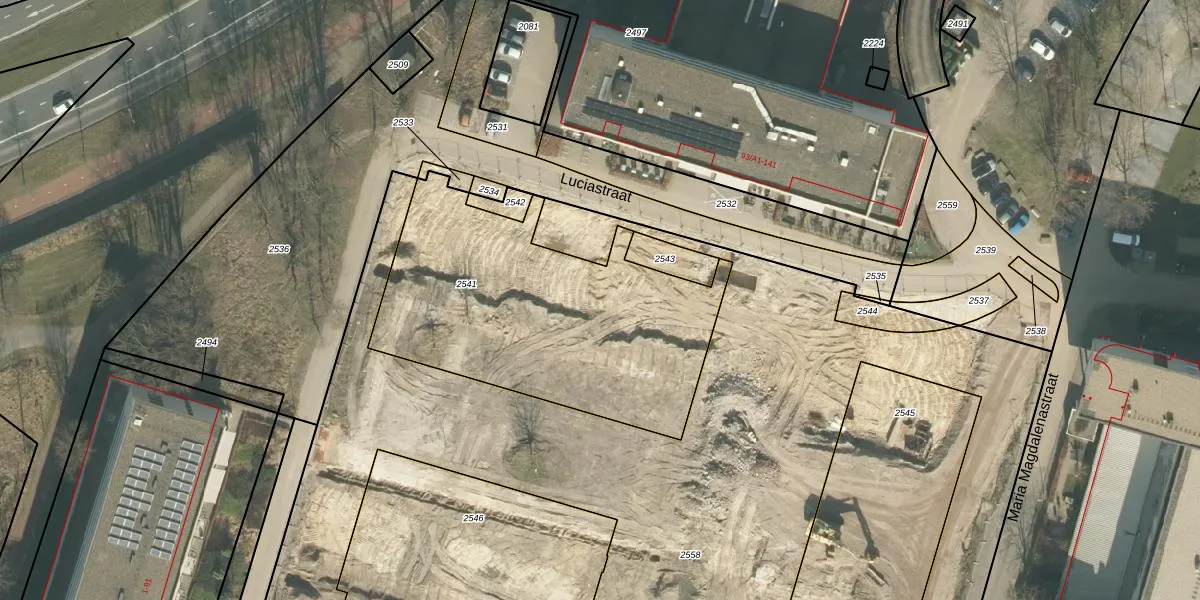 Het perceel waarop Luciastraat 182 staat heeft een oppervlakte van 1483 m². Dit is een zeer groot perceel. De perceeloppervlakte wordt geregistreerd door het Kadaster. Gedetailleerde informatie over de maten van dit perceel kunt u vinden in het rapport Kadastrale kaart met maatvoering van Luciastraat 182.