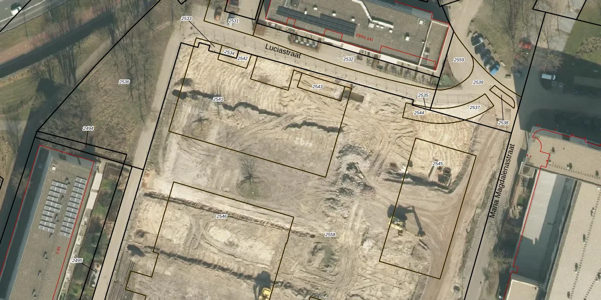 Het perceel waarop Luciastraat 186 staat heeft een oppervlakte van 1483 m². Dit is een zeer groot perceel. De perceeloppervlakte wordt geregistreerd door het Kadaster. Gedetailleerde informatie over de maten van dit perceel kunt u vinden in het rapport Kadastrale kaart met maatvoering van Luciastraat 186.