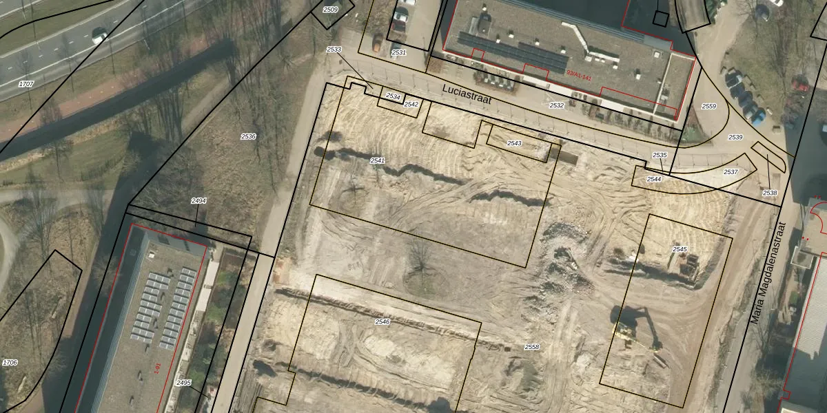 Het perceel waarop Luciastraat 190 staat heeft een oppervlakte van 1483 m². Dit is een zeer groot perceel. De perceeloppervlakte wordt geregistreerd door het Kadaster. Gedetailleerde informatie over de maten van dit perceel kunt u vinden in het rapport Kadastrale kaart met maatvoering van Luciastraat 190.