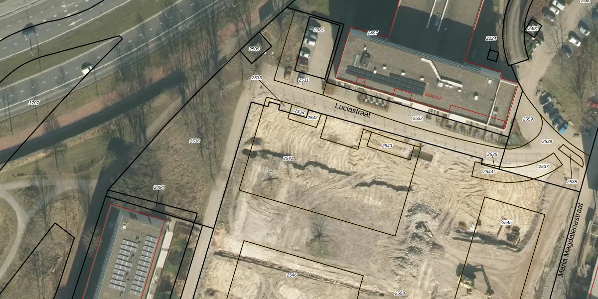 Het perceel waarop Luciastraat 194 staat heeft een oppervlakte van 1483 m². Dit is een zeer groot perceel. De perceeloppervlakte wordt geregistreerd door het Kadaster. Gedetailleerde informatie over de maten van dit perceel kunt u vinden in het rapport Kadastrale kaart met maatvoering van Luciastraat 194.