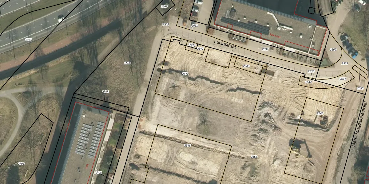 Het perceel waarop Luciastraat 200 staat heeft een oppervlakte van 1483 m². Dit is een zeer groot perceel. De perceeloppervlakte wordt geregistreerd door het Kadaster. Gedetailleerde informatie over de maten van dit perceel kunt u vinden in het rapport Kadastrale kaart met maatvoering van Luciastraat 200.