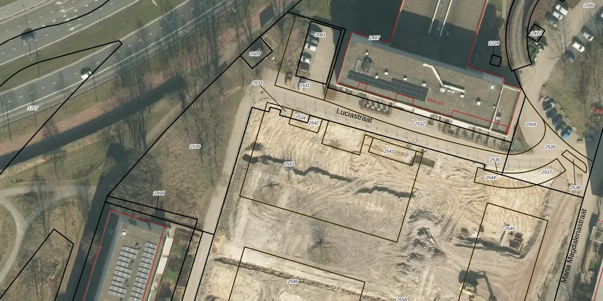 Het perceel waarop Luciastraat 202 staat heeft een oppervlakte van 1483 m². Dit is een zeer groot perceel. De perceeloppervlakte wordt geregistreerd door het Kadaster. Gedetailleerde informatie over de maten van dit perceel kunt u vinden in het rapport Kadastrale kaart met maatvoering van Luciastraat 202.