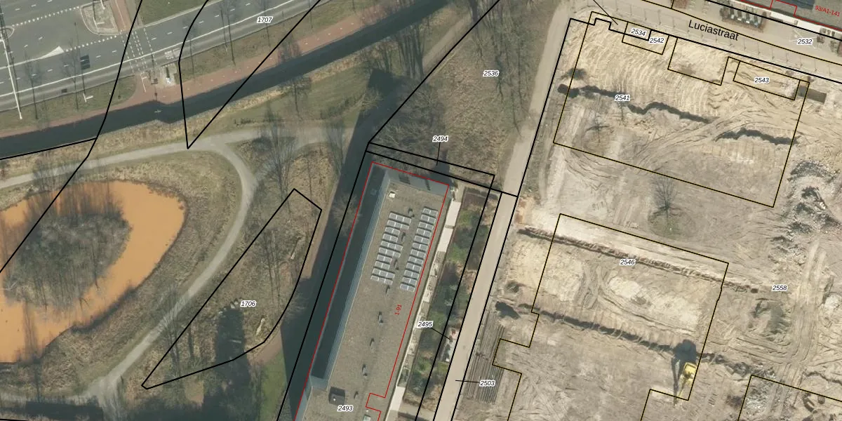 Het perceel waarop Luciastraat 29 staat heeft een oppervlakte van 3270 m². Dit is een zeer groot perceel. De perceeloppervlakte wordt geregistreerd door het Kadaster. Gedetailleerde informatie over de maten van dit perceel kunt u vinden in het rapport Kadastrale kaart met maatvoering van Luciastraat 29.