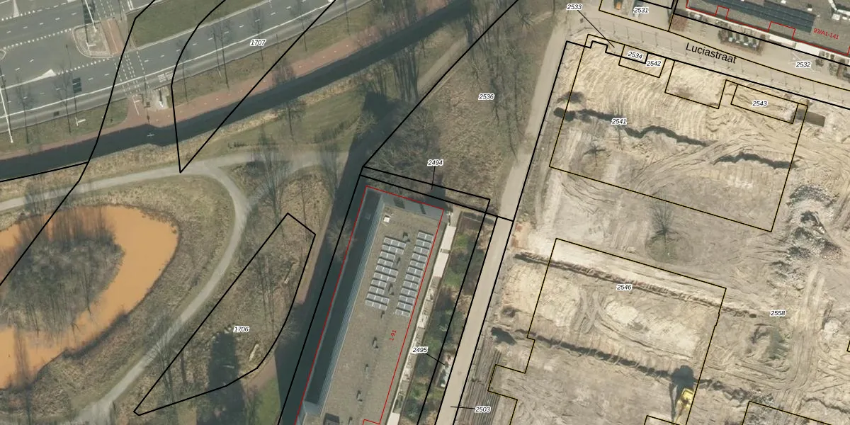 Het perceel waarop Luciastraat 31 staat heeft een oppervlakte van 3270 m². Dit is een zeer groot perceel. De perceeloppervlakte wordt geregistreerd door het Kadaster. Gedetailleerde informatie over de maten van dit perceel kunt u vinden in het rapport Kadastrale kaart met maatvoering van Luciastraat 31.