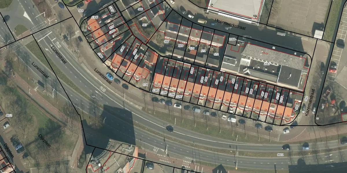 Het perceel waarop Lunetstraat 42 staat heeft een oppervlakte van 101 m². Dit is een middelgroot perceel. De perceeloppervlakte wordt geregistreerd door het Kadaster. Gedetailleerde informatie over de maten van dit perceel kunt u vinden in het rapport Kadastrale kaart met maatvoering van Lunetstraat 42.