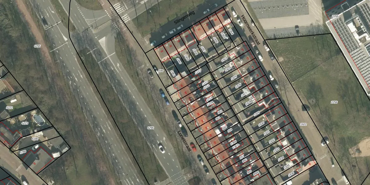 Het perceel waarop Lunetstraat 94 staat heeft een oppervlakte van 112 m². Dit is een middelgroot perceel. De perceeloppervlakte wordt geregistreerd door het Kadaster. Gedetailleerde informatie over de maten van dit perceel kunt u vinden in het rapport Kadastrale kaart met maatvoering van Lunetstraat 94.