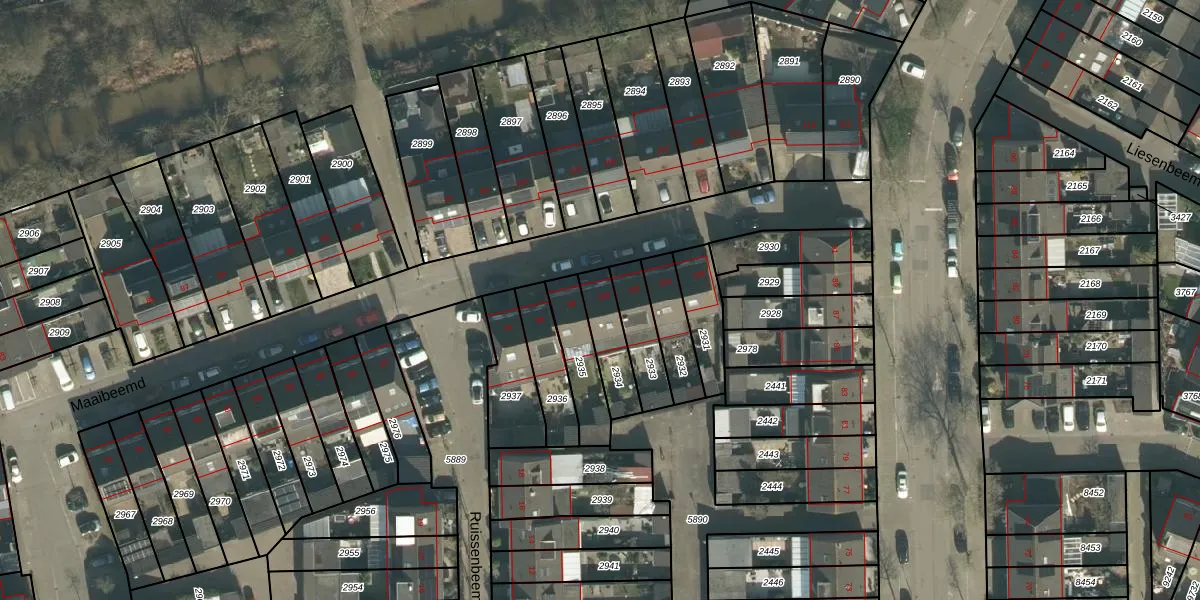 Maaibeemd 100 is gelegen op kadastraal perceel BDA00H2934. Deze kadastrale aanduiding is uniek en wordt gebruikt door het Kadaster om eigendomsrechten en andere zakelijke rechten vast te leggen. Het perceel maakt onderdeel uit van de kadastrale gemeente Breda.