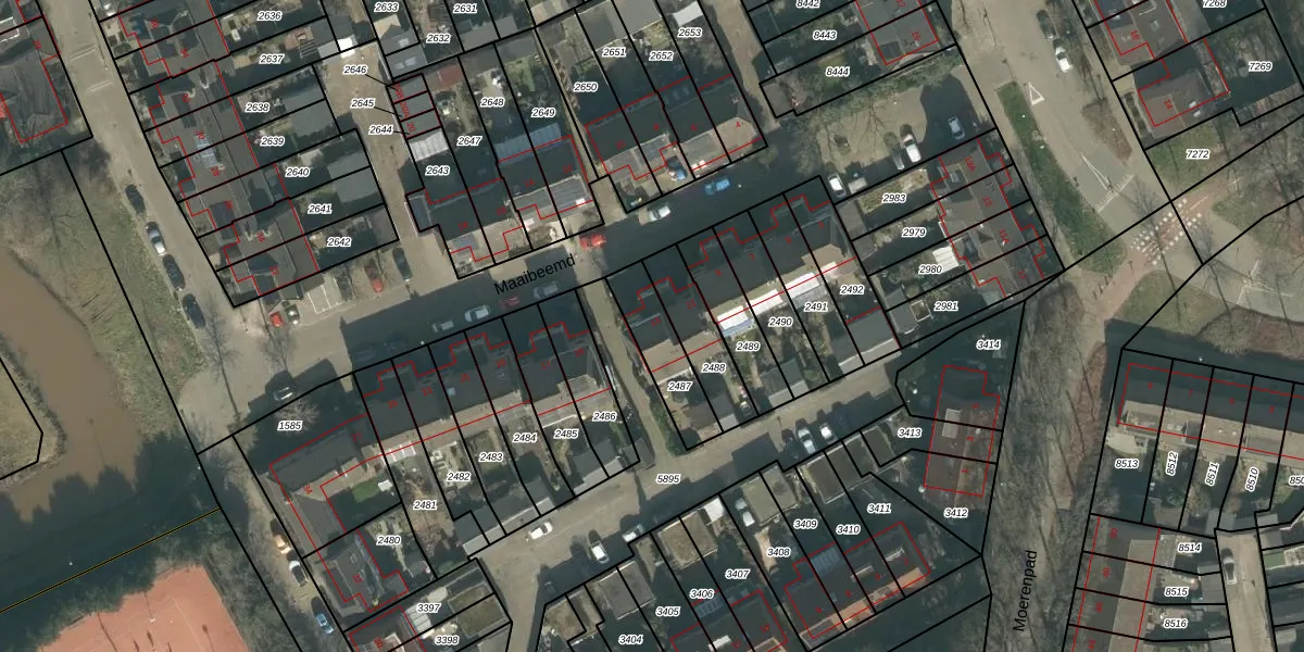 Het perceel waarop Maaibeemd 13 staat heeft een oppervlakte van 181 m². Dit is een middelgroot perceel. De perceeloppervlakte wordt geregistreerd door het Kadaster. Gedetailleerde informatie over de maten van dit perceel kunt u vinden in het rapport Kadastrale kaart met maatvoering van Maaibeemd 13.