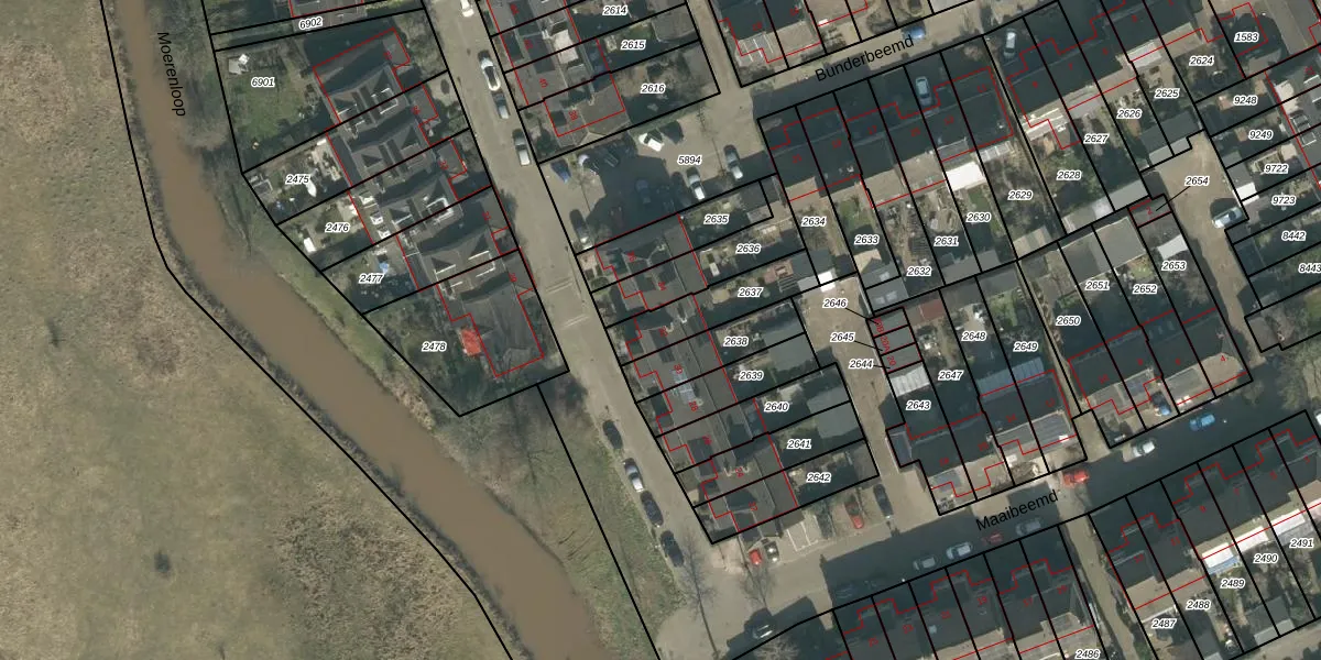 Maaibeemd 32 is gelegen op kadastraal perceel BDA00H2637. Deze kadastrale aanduiding is uniek en wordt gebruikt door het Kadaster om eigendomsrechten en andere zakelijke rechten vast te leggen. Het perceel maakt onderdeel uit van de kadastrale gemeente Breda.
