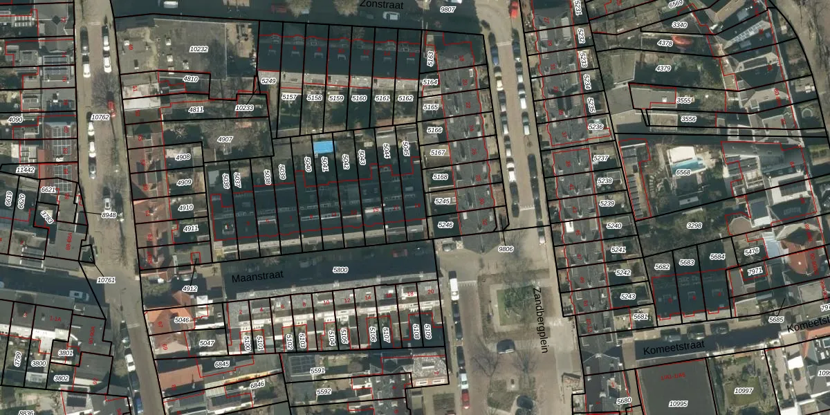 Maanstraat 19 is gelegen op kadastraal perceel BDA00D5045. Deze kadastrale aanduiding is uniek en wordt gebruikt door het Kadaster om eigendomsrechten en andere zakelijke rechten vast te leggen. Het perceel maakt onderdeel uit van de kadastrale gemeente Breda.