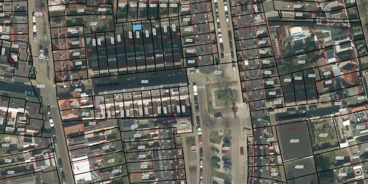 Maanstraat 20 is gelegen op kadastraal perceel BDA00D5109. Deze kadastrale aanduiding is uniek en wordt gebruikt door het Kadaster om eigendomsrechten en andere zakelijke rechten vast te leggen. Het perceel maakt onderdeel uit van de kadastrale gemeente Breda.