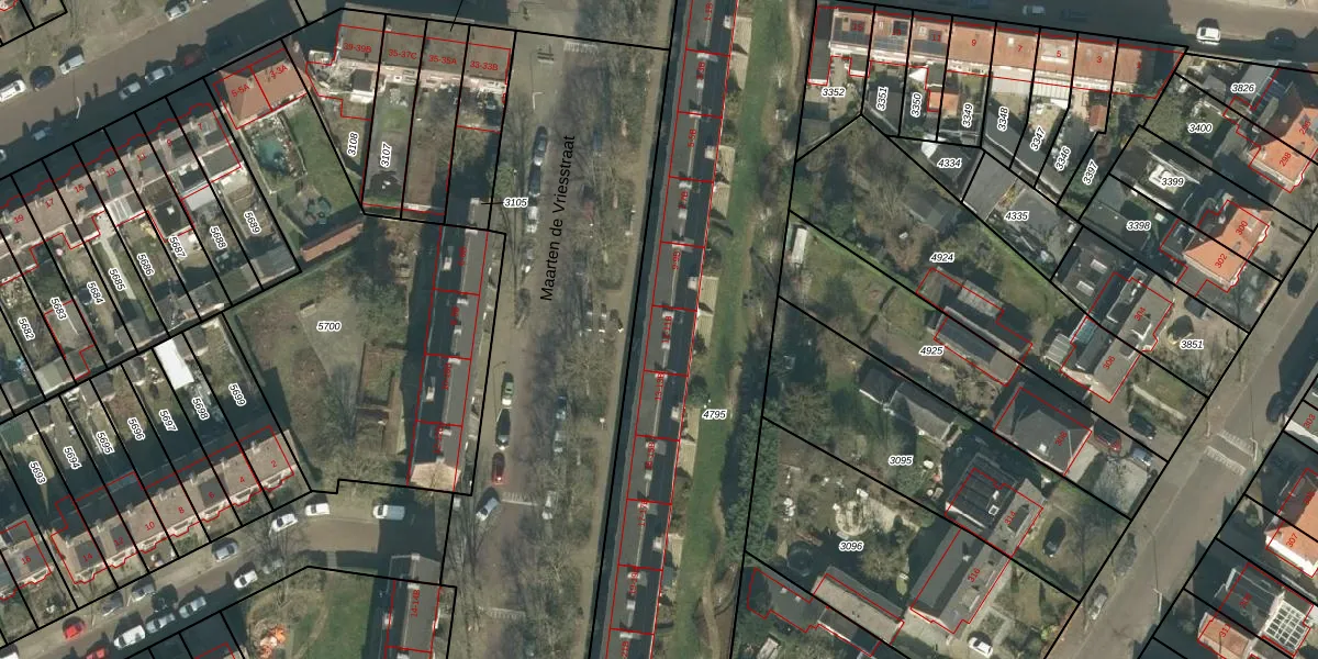 Het perceel waarop Maarten de Vriesstraat 11 staat heeft een oppervlakte van 2981 m². Dit is een zeer groot perceel. De perceeloppervlakte wordt geregistreerd door het Kadaster. Gedetailleerde informatie over de maten van dit perceel kunt u vinden in het rapport Kadastrale kaart met maatvoering van Maarten de Vriesstraat 11.