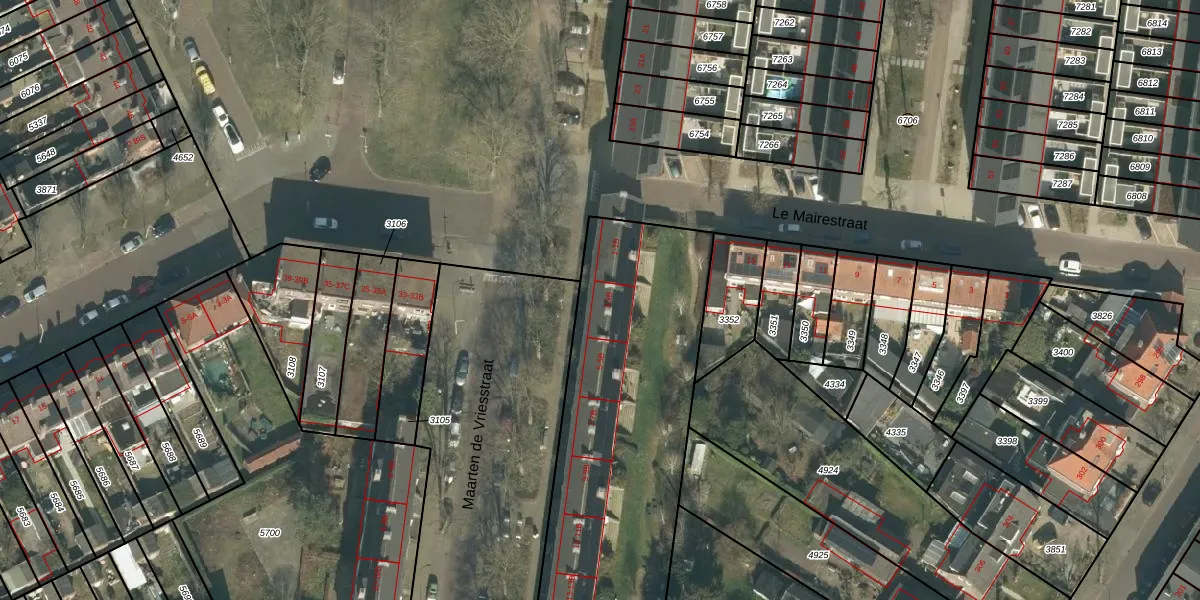 Het perceel waarop Maarten de Vriesstraat 3 staat heeft een oppervlakte van 2981 m². Dit is een zeer groot perceel. De perceeloppervlakte wordt geregistreerd door het Kadaster. Gedetailleerde informatie over de maten van dit perceel kunt u vinden in het rapport Kadastrale kaart met maatvoering van Maarten de Vriesstraat 3.