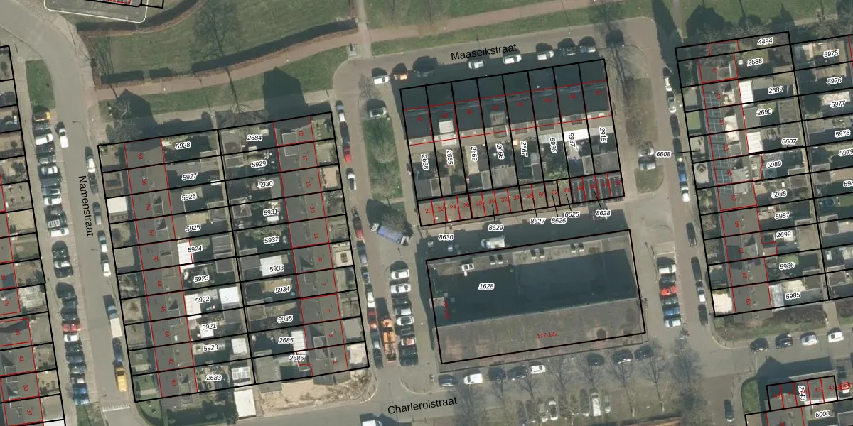 Maaseikstraat 20 is gelegen op kadastraal perceel BDA00G8630. Deze kadastrale aanduiding is uniek en wordt gebruikt door het Kadaster om eigendomsrechten en andere zakelijke rechten vast te leggen. Het perceel maakt onderdeel uit van de kadastrale gemeente Breda.