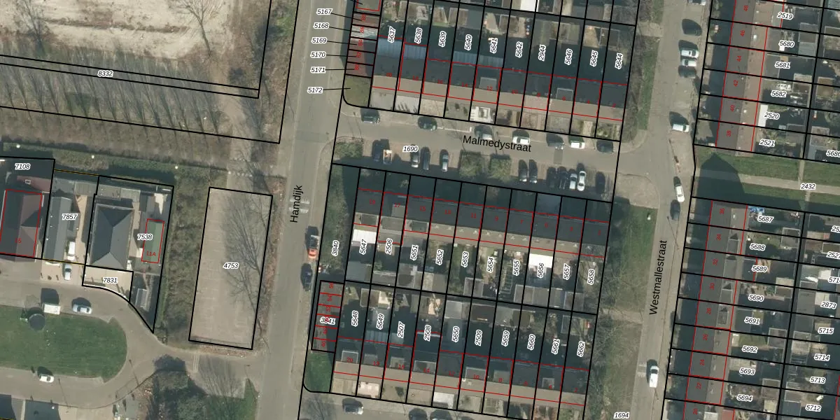 Malmedystraat 15 is gelegen op kadastraal perceel BDA00G5651. Deze kadastrale aanduiding is uniek en wordt gebruikt door het Kadaster om eigendomsrechten en andere zakelijke rechten vast te leggen. Het perceel maakt onderdeel uit van de kadastrale gemeente Breda.