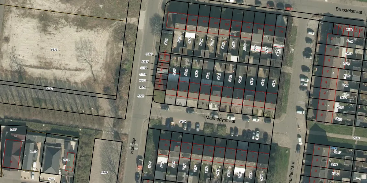 Malmedystraat 18 is gelegen op kadastraal perceel BDA00G5638. Deze kadastrale aanduiding is uniek en wordt gebruikt door het Kadaster om eigendomsrechten en andere zakelijke rechten vast te leggen. Het perceel maakt onderdeel uit van de kadastrale gemeente Breda.